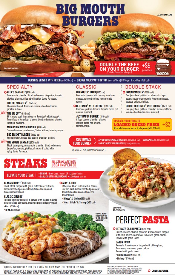 Welcome to Chili's Grill & Bar, where vibrant flavors meet a warm, inviting atmosphere. Located in Holly Springs, NC, this beloved eatery serves up a tantalizing menu that highlights mouthwatering fajitas, crafted with your choice of steak, chicken, or shrimp, all perfectly paired with fresh toppings. The quesadillas, featuring slow-smoked brisket or crispy chicken with bacon, are a must-try, showcasing the restaurant's commitment to quality and flavor.